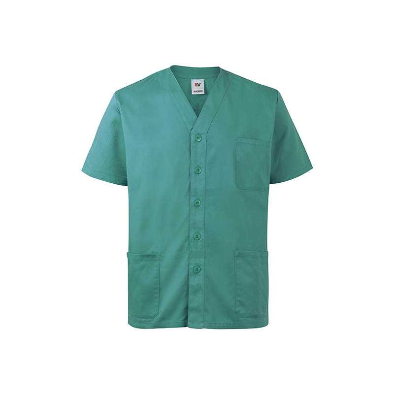 Front zip with snap washer buttons V-neck Three pockets: 3 patch pockets