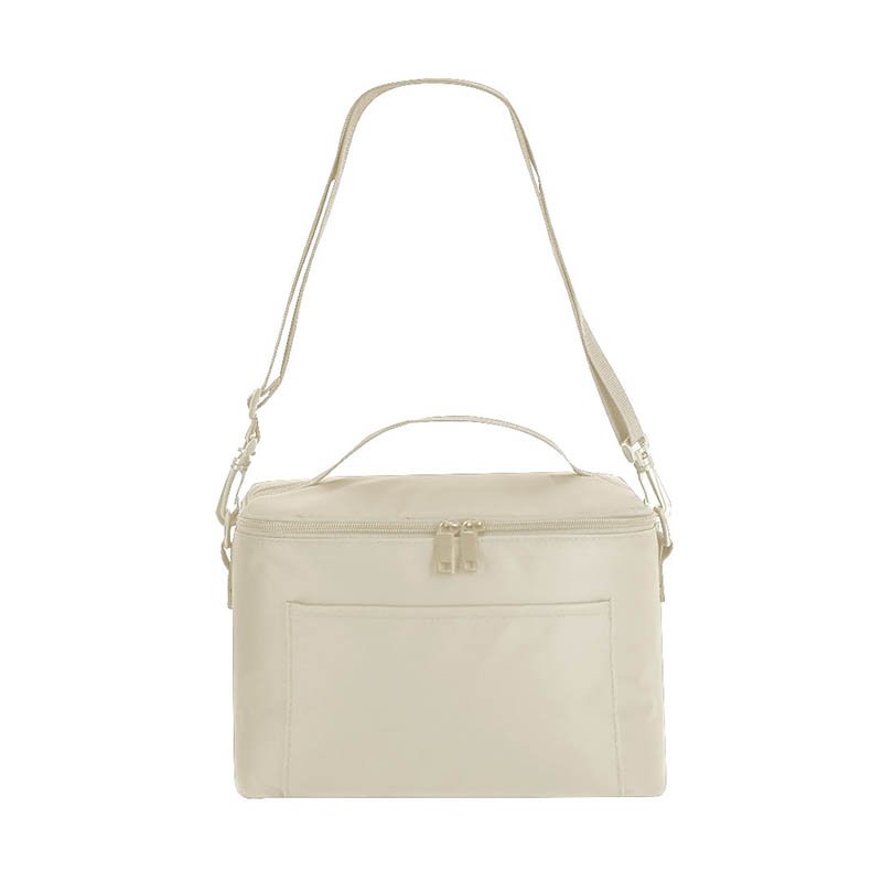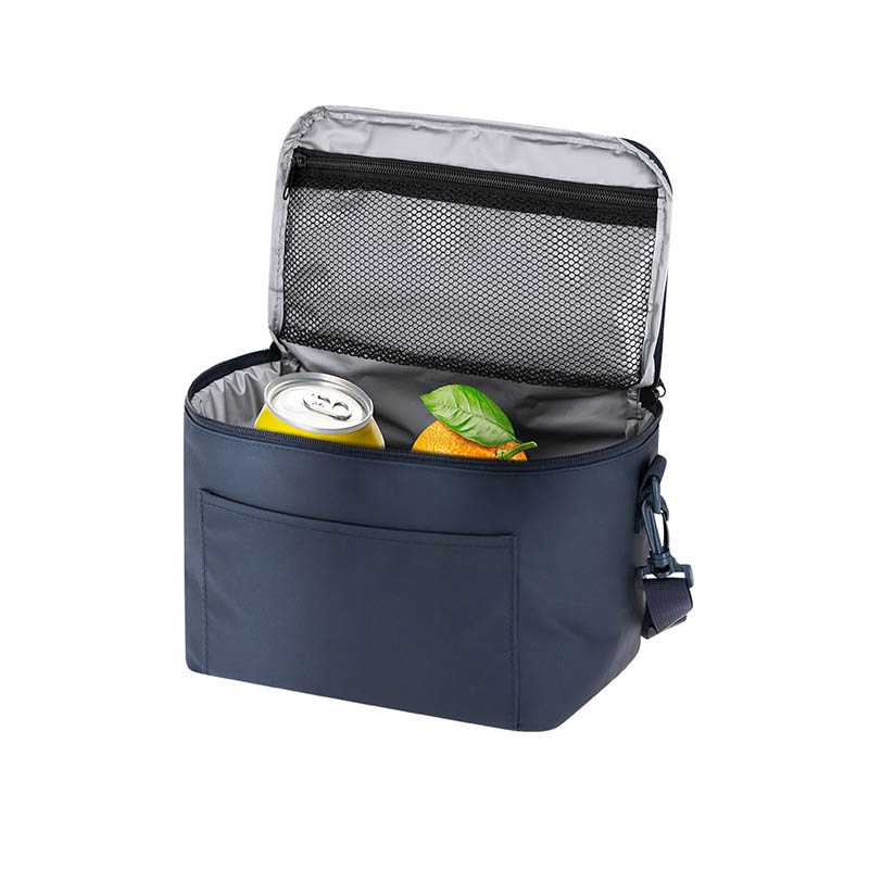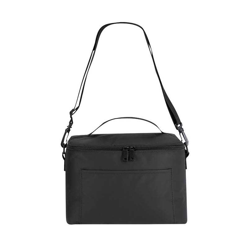 Cooler bag ICE in square format: with insulated zippered main compartment, a zippered pocket on the front, adjustable shoulder strap