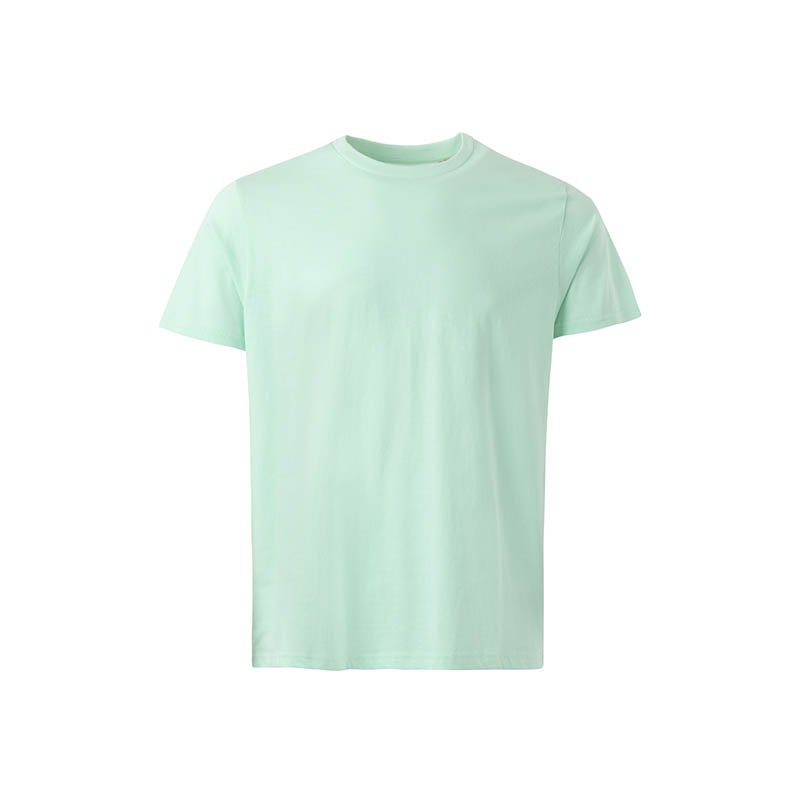 Short-sleeve UNISEX t-shirt. Single Jersey. 100% Organic RingSpun Combed Cotton. 160 g/m2. Ribbed knit round neck 1x1 with elastane to increse elasticity. Shouldre-to-shoulder reinf