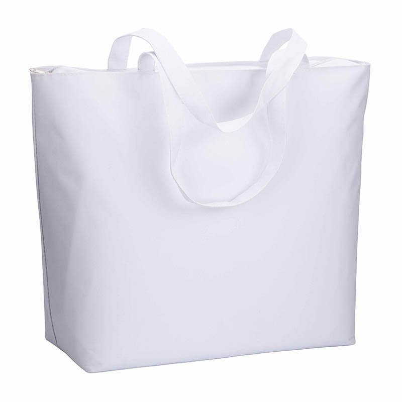 300D polyester beach bag with long handles, zip closure and gusset on bottom