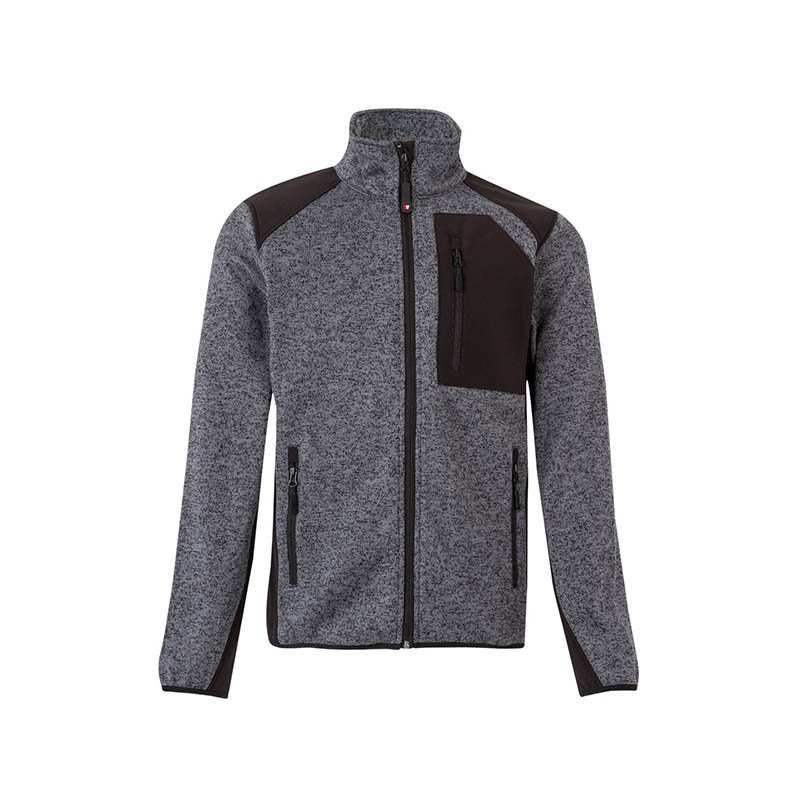 Front closure with contrasting inverted zip Soft-shell fabric piece in the chest to ease marking Inner upturned cover flap with zip cover Contrast colour in zips and soft-shell fabric re