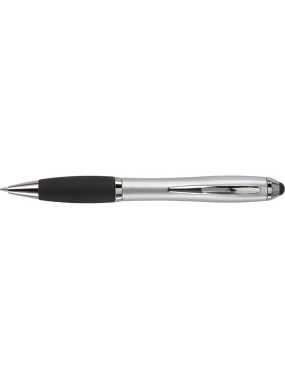 ABS and metal ballpen with rubber grip and rubber tip suitable for capacitive screens. Black ink.