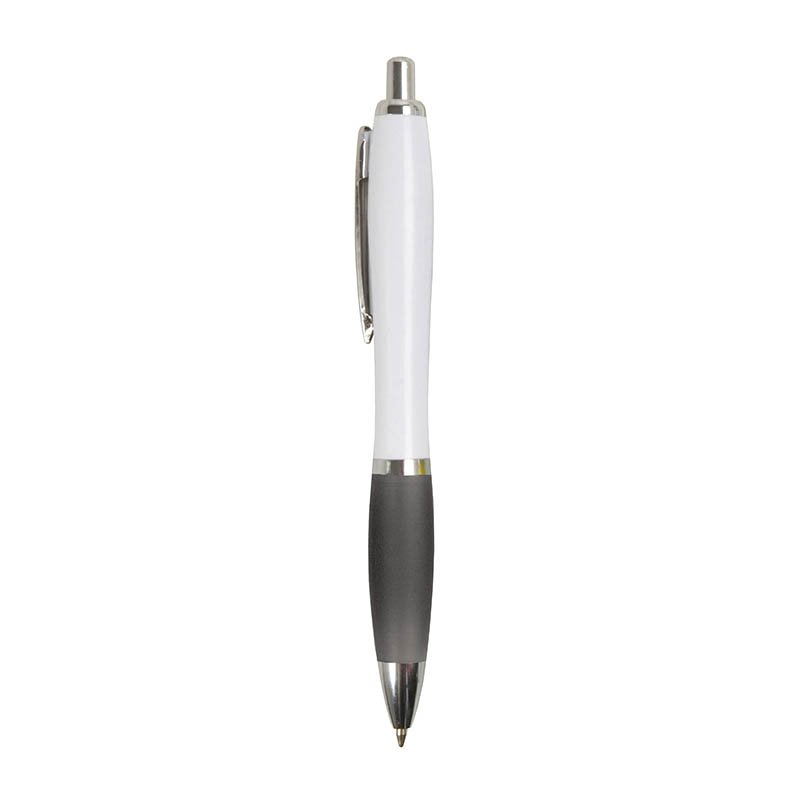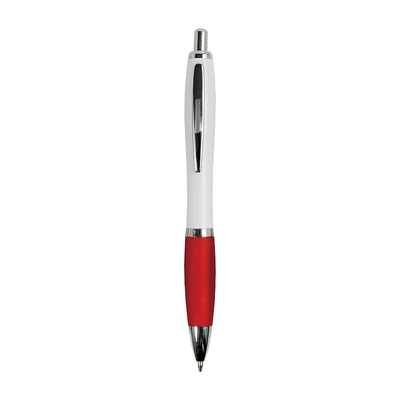 Guľôčkové pero R-ABS vyrobené z recyklovaného plastu, v rôznych farbách s doplnkami v chrómových farbách a čiernou protišmykovou časťou na uchopenie.