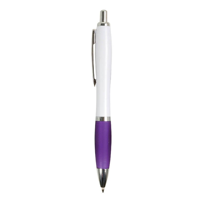 Plastic snap pen with coloured barrel, matching rubberised grip and metal clip, jumbo refill
