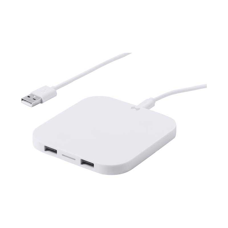 Plastová bezdrôtová nabíjačka (5W) na mobil s 2 USB portmi. Max. výstup 2100 mA. Vrátane nabíjacieho kábla USB.