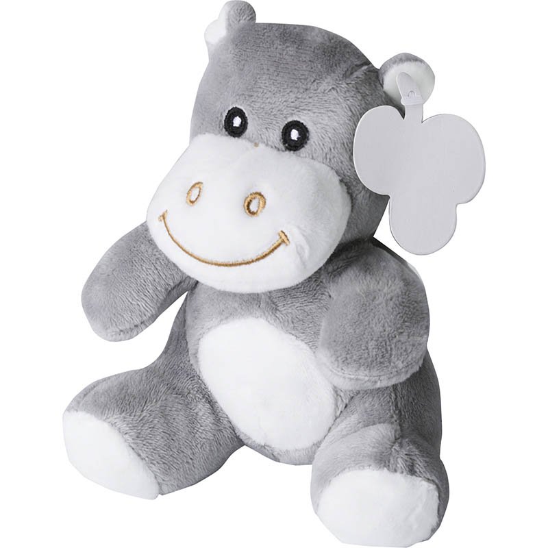 Plush toy hippo. Embroidery eyes. Includes a tag for printing purposes.
