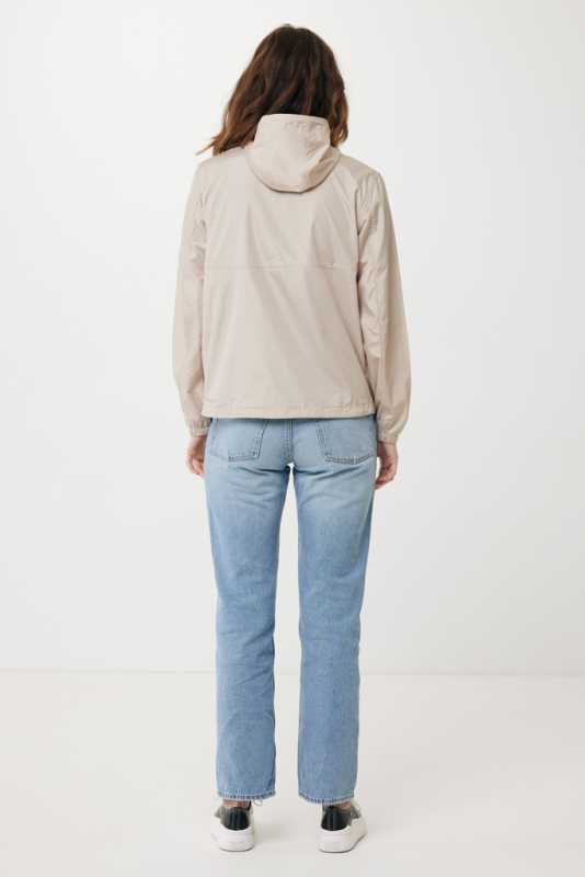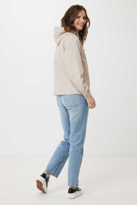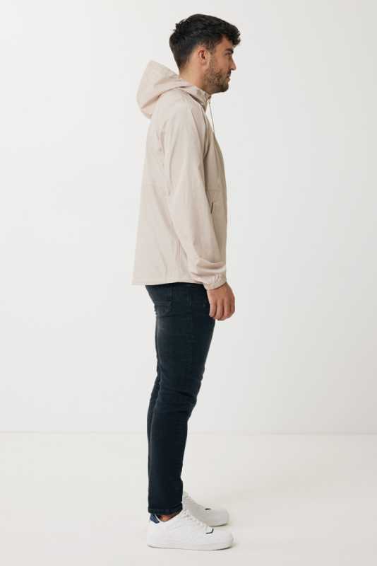 Unisexová medium fit ľahká bunda vyrobená zo 100% post-consumer recyklovaného polyesteru s gramážou 70g/m2. Sťahovacia kapucňa, obojstranný zips na prednej časti, švy prešité vrecká. Ťahače zipsov v ladiacich odtieňoch. Plne elastické manžety. Predĺžená, do oblúka zakrivená zadná spodná časť, spodný lem s elastickou sťahovacou gumičkou pre vyššiu ochranu. Vode repelentná impregnácia bez obsahu fluórinu/PFAS. Obsah recyklovaných materiálov je garantovaný vďaka využitiu technológie AWARE™, ktorá kombinuje možnosť skenovania materiálu a technológiu blockchain. Každý produkt Iqoniq vlastní unikátny štítok s QR kódom, ktorý odkazuje na príslušný digitálny pas produktu. 2% z výťažku každého predaného kusu sú darované na Water.org. Certifikované OEKO-TEX® STANDARD 100.