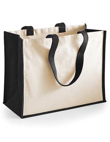 Bavlněné postranní díly a ucha . Přední a zadní díly – laminovaná juta . Délka ucha: 60 cm . Objem: cca. 21 litrů . Lze nosit v ruce nebo přes rameno . Plátěné boční díly vhodné pro tisk . Dodávka bez obsahu/dekorace . Juta je přírodní materiál, jehož vzh