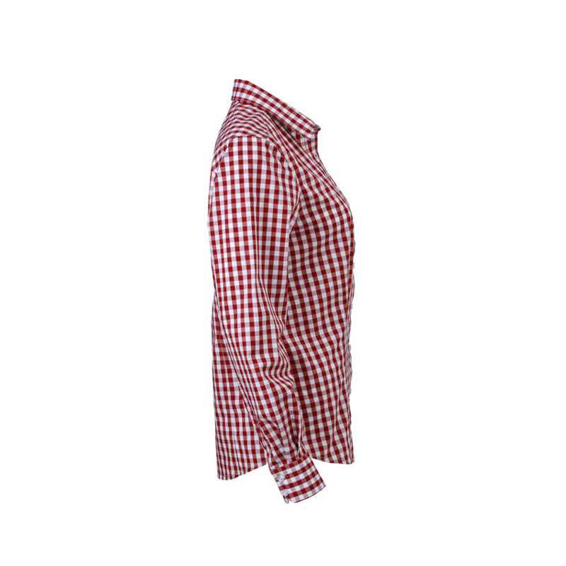 Dámská košile James & Nicholson Ladies Checked Shirt.Módní košile s dlouhým rukávem v různých barvách..Vnější materiál: 100% Bavlna.Vysoce kvalitní popelín, snadno se žehlí a snadno udržuje.Zaoblený lem.Zúžený, ženský střih.100 g / m2.Balení: 5/20 . (ks v