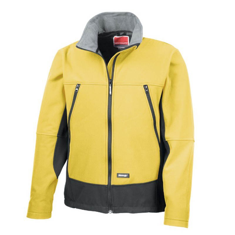 ·Outer: 320 gsm, 93% polyester, 7% elastane ·Mid-layer: TPU breathable, water and windproof membrane ·Inner layer: 100% polyester (microfleece) ·Breathable (1,000 gsm in 24h) ·Wind and waterproof (8,000 mm) ·Comfortable fit ·YKK full zip with chin guard ·Decorative front and back yoke ·Underarm zip opening with mesh backing ·Various pockets ·Cuffs with thumb opening on inside ·Bottom hem with adjustable drawcord ·Longer back panel ·Suitable for embroidery. Značka : RESULT . Materiál : 320g/m2; Polyester