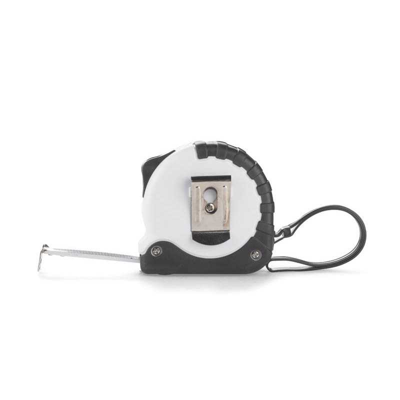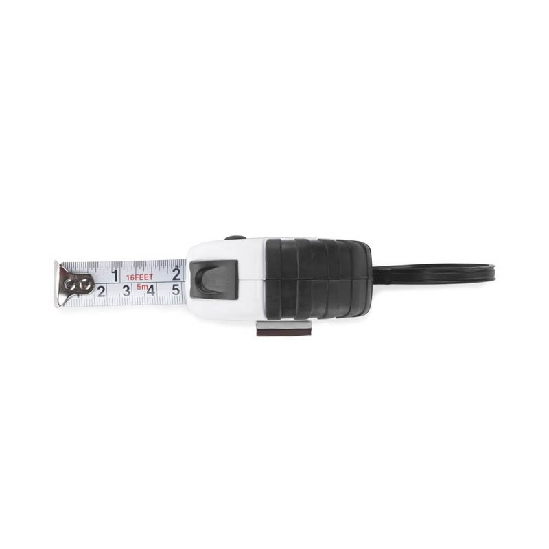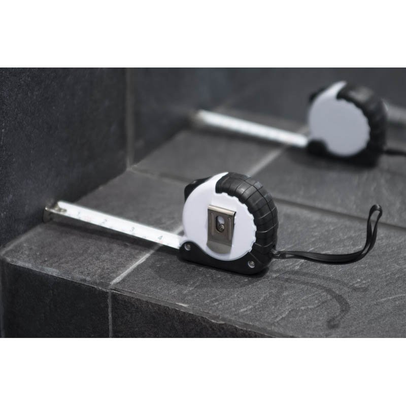 Kompaktný zvinovací meter ABS s príchytkou a pútkom. Zvinovací meter s dĺžkou 5 m a šírkou 19 mm a s háčikom.