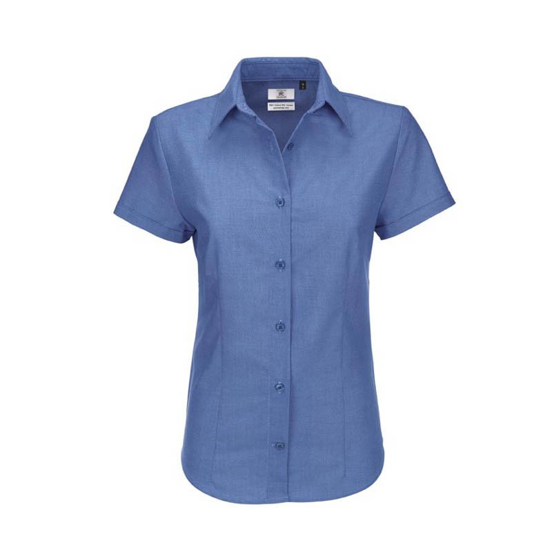 Cotton rich polycotton Oxford fabric with Easy Care finish, - Soft feminine collar, - Cross stitched mother-of-pearl effect buttons ( voir s’il faut ajouter cela : except Oxford Blue: mother-of-pearl effect white buttons), - Short sleeves with narrow cuffs, - Darts at bustlne & back panel for a feminine shape, - Horizontal last buttonhole, Quality, Out: Oxford, In: 70% combed cotton - 30% polyester, 135g/m2, Professional informations, 1 pc/pack & 10 pcs/carton, Adjusted Fit. BK04 Značka : B&C . Materiál : 70% bavlna/30% polyester, 135g/m2
