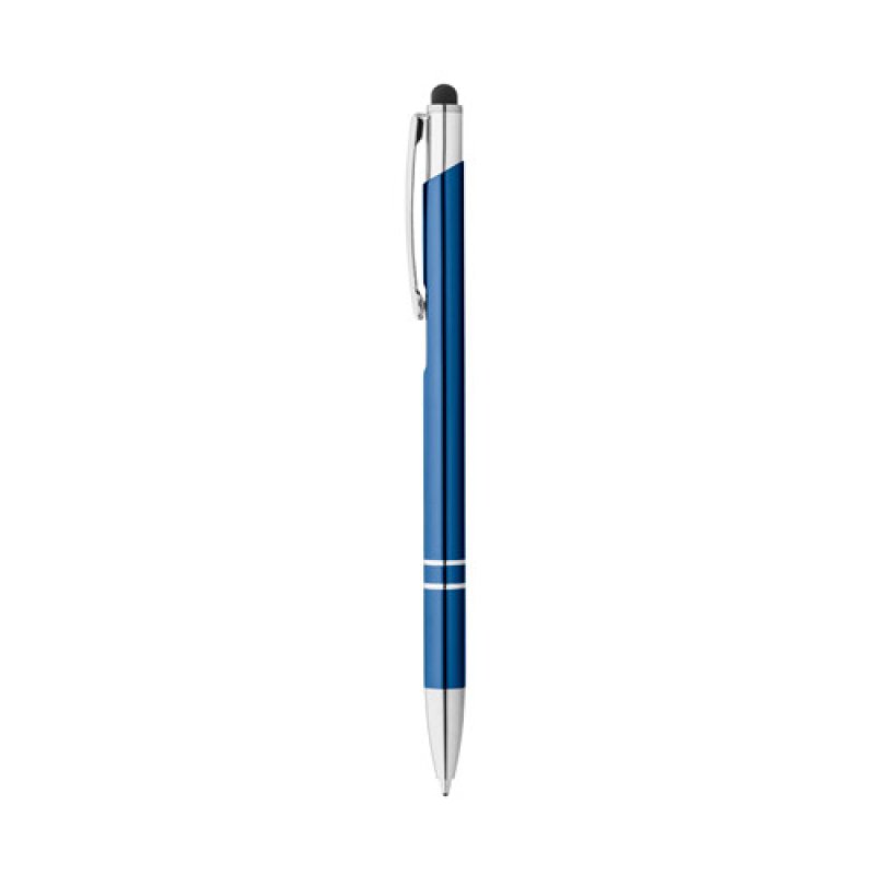 Hliníkové guľôčkové pero s dotykovým hrotom a klipom. Dostupné v širokej škále farieb. Modrý atrament. o8 x 142 mm
