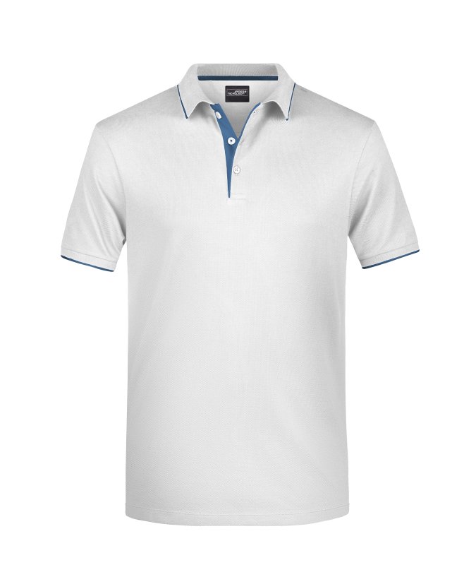 100 % piké bavlna.Rebrovaný golier s kontrastným lemovaním a kontrastným spodným golierom (okrem bielej/námorníckej farby: bez kontrastu pod golierom, len s tenkým červeným lemom pod légou).Kontrastne podlepený výstrih a rozparky naboku.2 gombíky s légou s ozdobnou potlačou na spodnom golieri.Rebrované manžety s kontrastným lemovaním.Dvojité prešívanie na leme.Stojaci golier – možno nosiť s golierom hore alebo dole.Certifikát STANDARD 100 podľa OEKO-TEX® č. CQ 1007/7, IFTH.