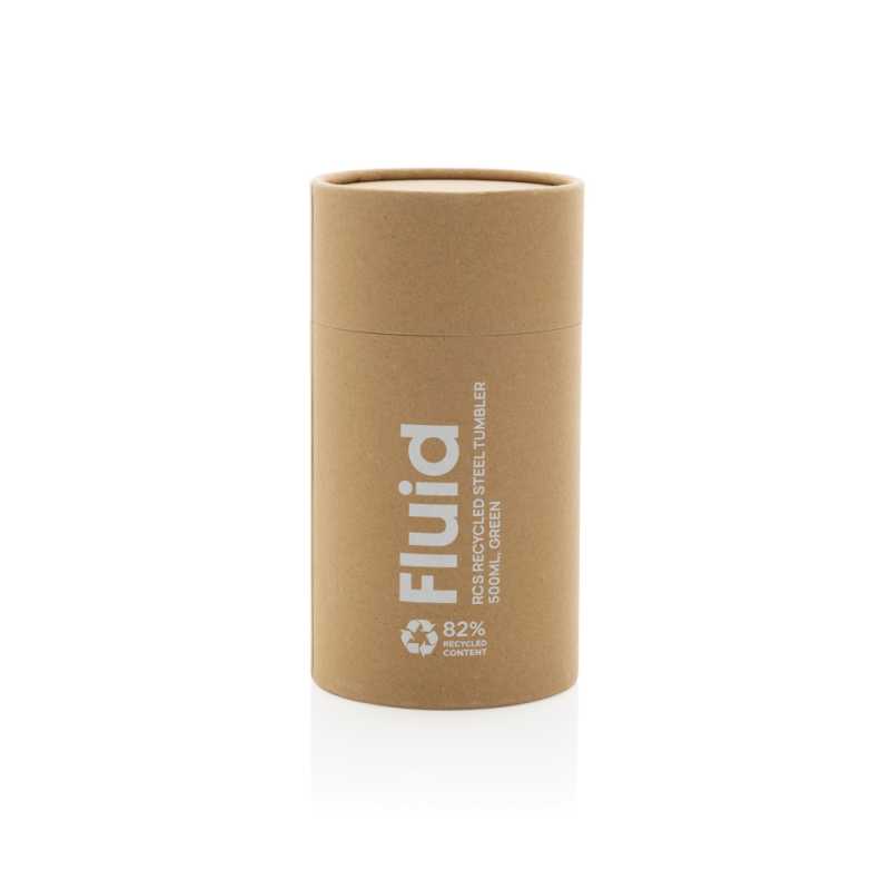 NOVINKA 2025. Tento 500ml termohrnček má výrazný dvojfarebný štýlový dizajn. Dvojstenná vákuová izolácia z recyklovanej nerezovej ocele udrží nápoje chladené až 15 hodín alebo teplé až 5 hodín. Hrnček Fluid sa hodí pre väčšinu štandardných držiakov nápojov do auta. Vyrobený z recyklovaných materiálov certifikovaných podľa RCS (Recycled Claim Standard), čo zaisťuje kompletne certifikovaný dodávateľský reťazec recyklovaných materiálov. Recyklovaný obsah podľa celkovej váhy produktu: 81%. Bez BPA. Zahŕňa darčekové balenie z kraftového papiera s certifikáciou FSC®.