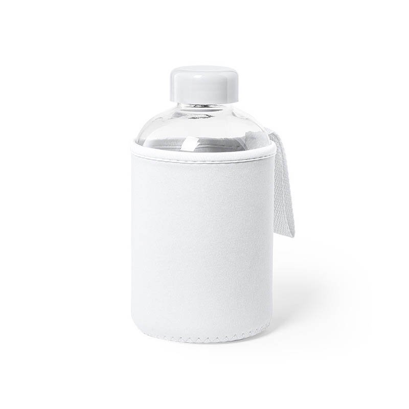 NOVINKA 2025. 420ml capacity glass bottle. With screw-on safety cap and practical carrying strap, supplied in a stylish neoprene sleeve in bright colours. Presented in an individual design box.