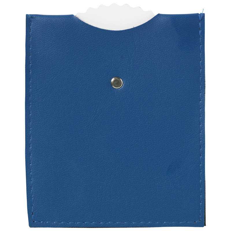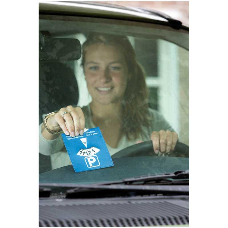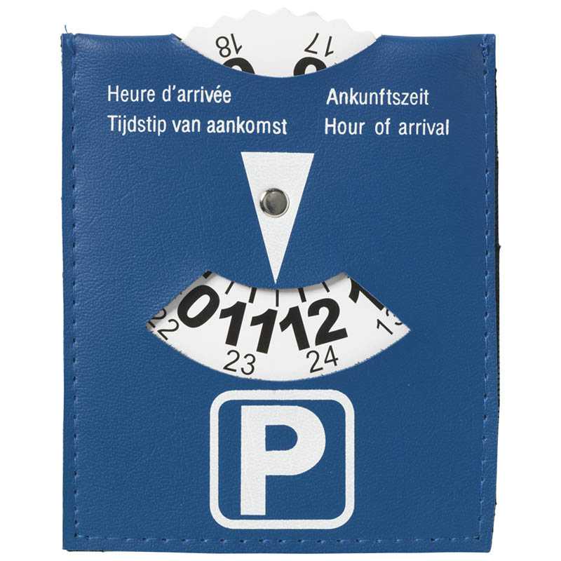 Parking disk made of blue imitation leather.