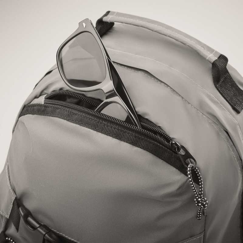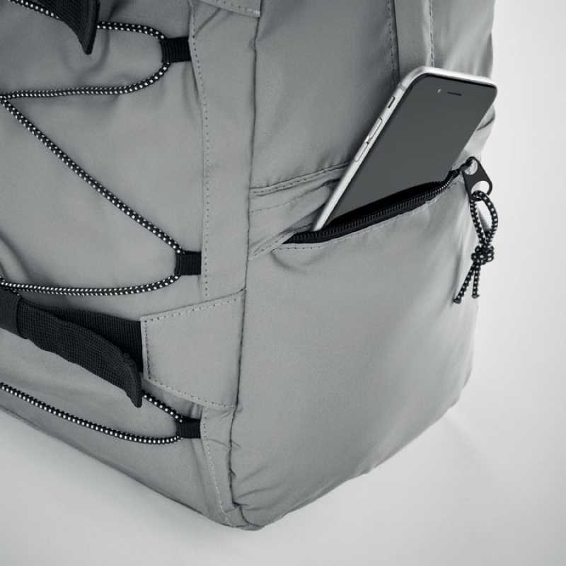 Batoh z vysoce reflexního polyesteru 190T se šňůrkou na přední straně. Polstrovaná záda, popruhy a dno. Má přihrádku na 15 palcový notebook. Jedna boční kapsa ze síťoviny a druhá boční kapsa na zip.