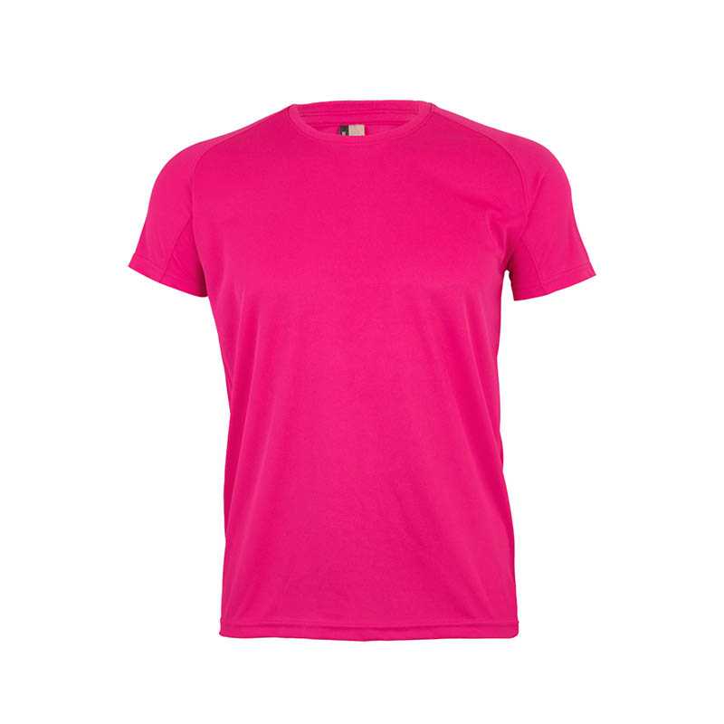 UNISEX Short-Sleeve technical T-shirt. Bird Eye. 100% Polyester. 130 g/m2. Raglan sleeve Same fabric round neck with reinforced neck tape to avoid deformation Easy care, fast dryin