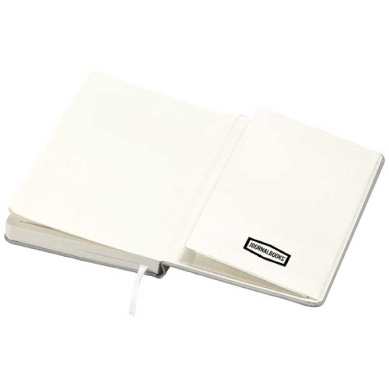 Zápisník vo formáte A5 s tvrdou väzbou z FSC® certifikovaného papiera. Záložka a pútko na pero v zladenej čiernej farbe. Vrecko v zadnej časti na uchovanie poznámok. Obsahuje 80 listov/160 strán krémového linajkového FSC® certifikovaného papiera.