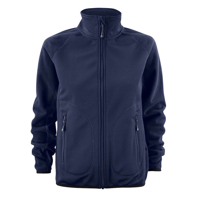 Microfleece jacket with raglan sleeves for greater freedom of movement. Zipper at front with chin guard to prevent chafing. Patch breast pocket with zipper and internal loop for ID-card. Side pockets with concealed zippers. Two inner pockets. Fabrics: 100% polyester.