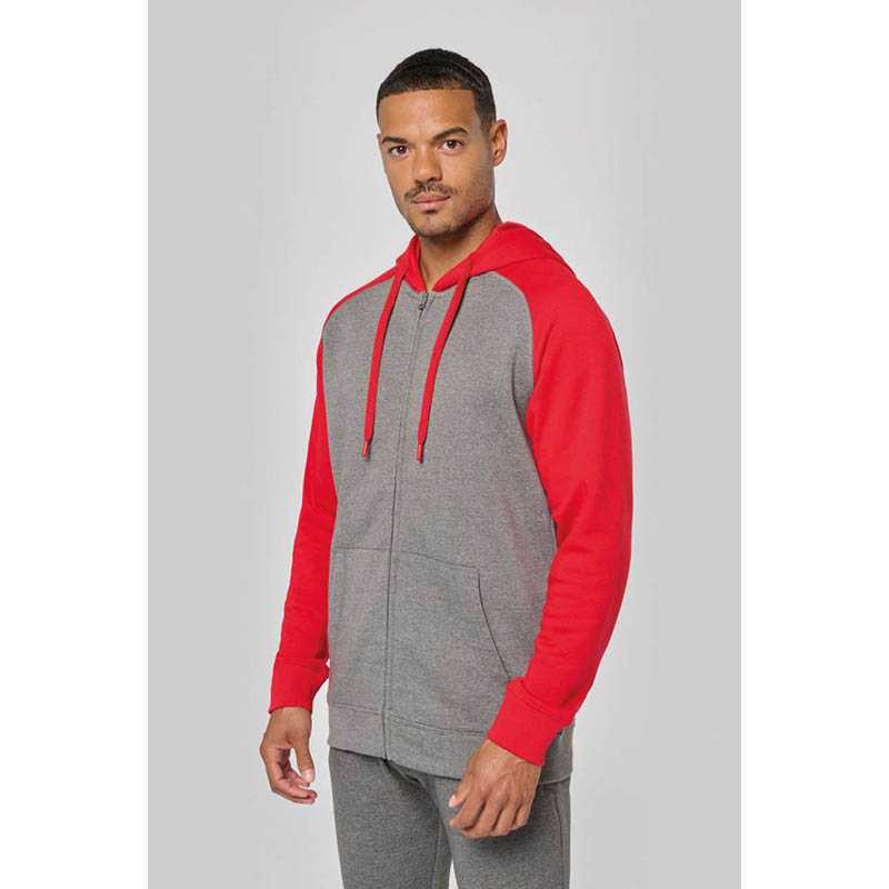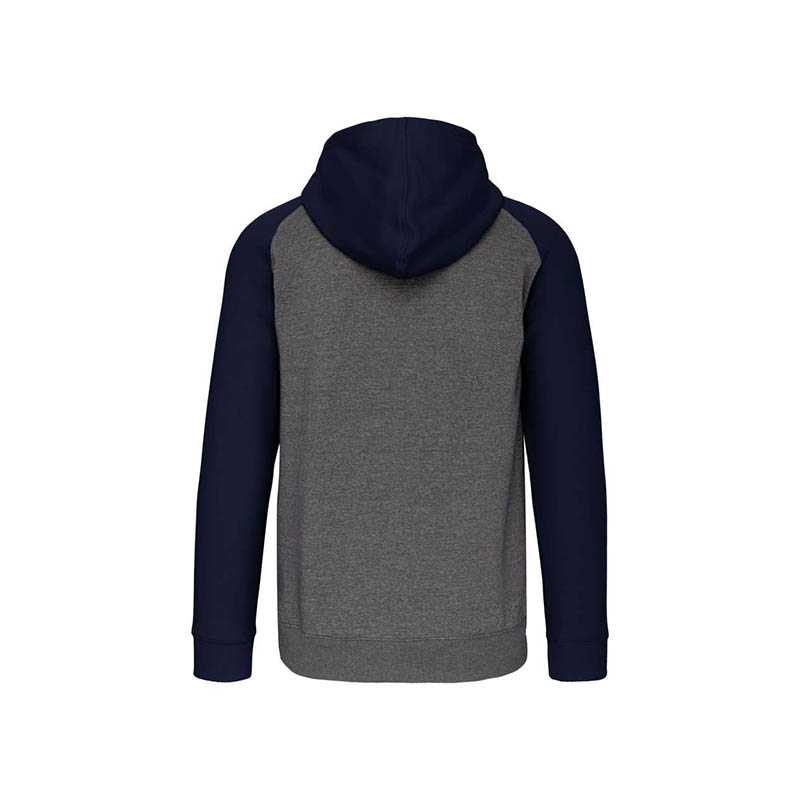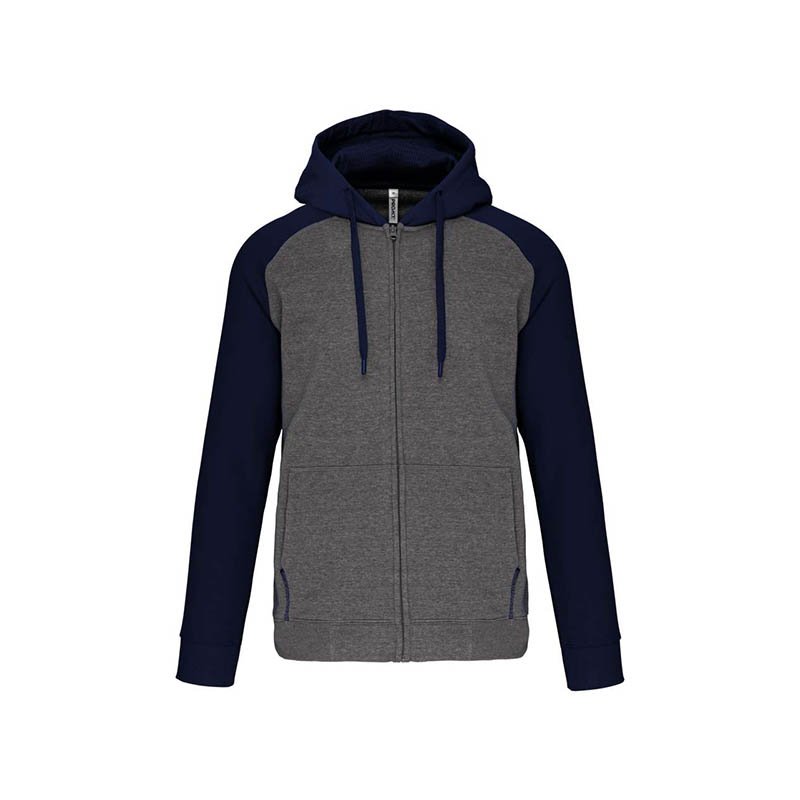 65 % polyester/35 % bavlna.Kartáčovaný flís.Zapínanie na zips.Kontrastné raglánové rukávy a kapucňa.Kapucňa podšitá sieťovým úpletom v rovnakej farbe.Klokanie vrecká s fluorescenčným vreckom na telefón.Prístup pre slúchadlá.2 x 2 dvojvrstvové rebrované manžety a spodný okraj.Certifikát STANDARD 100 podľa OEKO-TEX®N° CQ1007/7, IFTH.