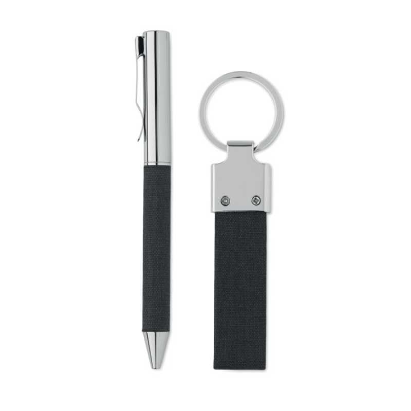 Dárkový set skládající se z pera a klíčenky. Černá náplň v peru. Navíc má klíčenka dvě kroužky pro snadnější sdílení klíčů. Můžeme vyryt gravír na pero nebo tisknout vaše logo na krabici.