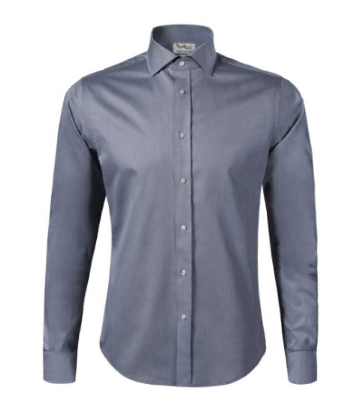 navrhnuté popredným českým krajčírom Romanom Humlíčkom, priadza z extra dlhých vlákien, zúžený strih s bočnými švami, dvojté sedlo a zášivky na zadnom diele, dvojdielny košeľový golier, vystužené špičky goliera, predné kraje začistené légou, dlhé rukávy s
