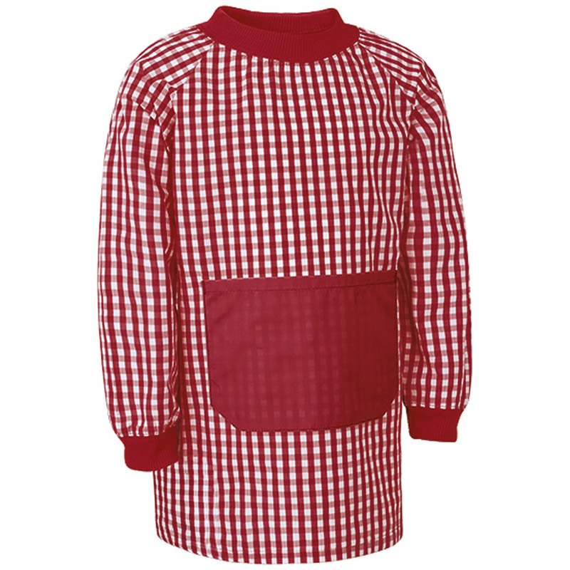 Crewneck Buttonless Kids´ Smock with Spacious Central Pocket. Made of lightweight and long-lasting cotton fabric blended with polyester flat weave, using dyed yarn and checkered design, ensuring strength and durability. Elastic ribbed crewneck for comfortably fitting, includes a wide sewn-in ribbon on the inside back for easy hanging . Spacious front pocket, in a contrasting plain colour, ensuring easy accessibility. Suitable marking methods: screen printing, vinyl application, transfer printing, embroidery. Ideal for babies and toddlers in nurseries as it can be effortlessly worn over their clothes.