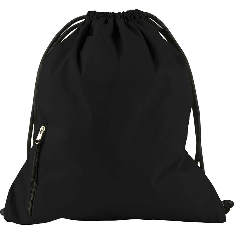 Pongee (190T) drawstring backpack. The front has a pocket with zipper.