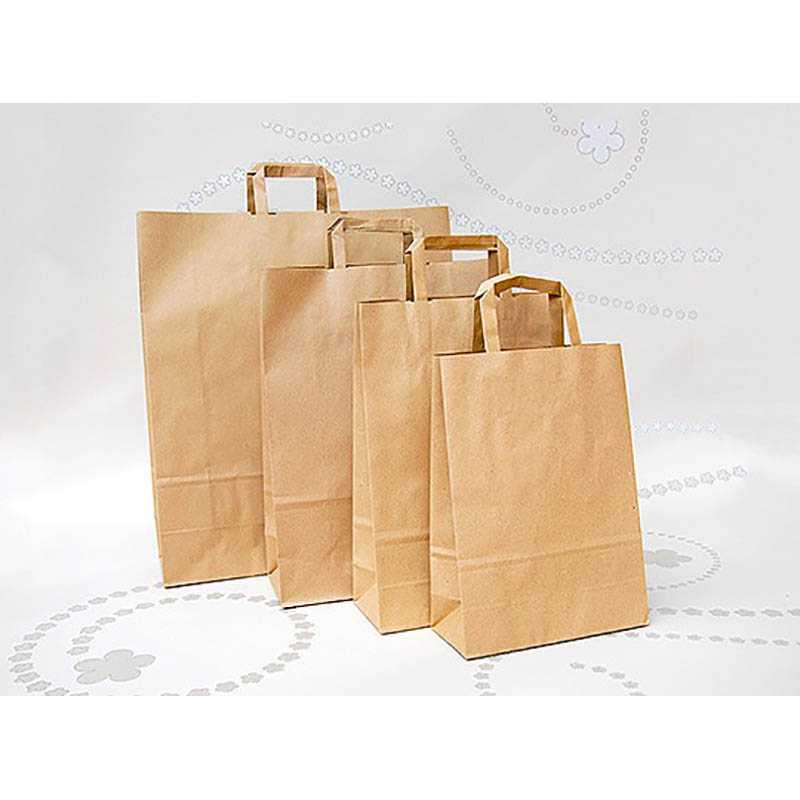 Rozmer: 45x17x48 cm ; Materiál: 100 gr. recyklovaný hnedý ; Uško: ploché papierové hnedé ; Balenie: 150ks ; Minimálny odber: 10ks