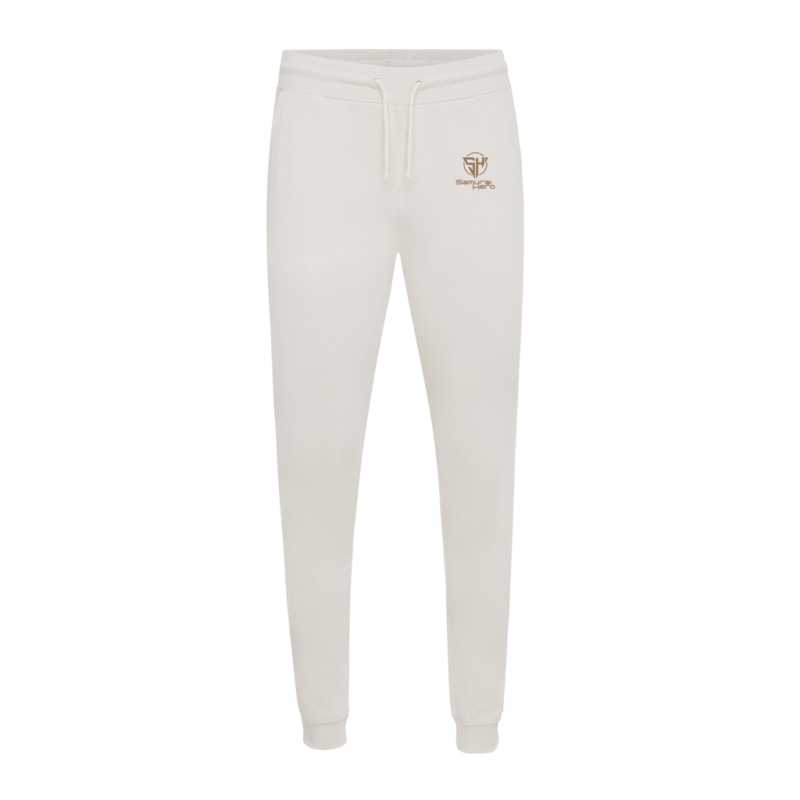 85 % organická bavlna/15 % recyklovaný polyester.Prstencovo spriadaná česaná bavlna.3-vrstvový kartáčovaný flís, LSF (Low Shrinkage Fleece).1 x 1 rebrovaný pás so sťahovacou šnúrkou a očkom na gombíkovú dierku.Bočné vrecká a jedno zadné vrecko s lemovaním.1 x 1 rebrovaný spodný okraj nohavíc.