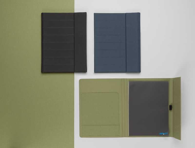 Konferenční A5 desky na dokumenty z PU plátna s magnetickým zavíráním. Obsahuje power banku 4000 mAh. Zabudované konektory micro USB a typ C. Poznámkový blok A5. 20 linkovaných listů. Několik vnitřních kapes.