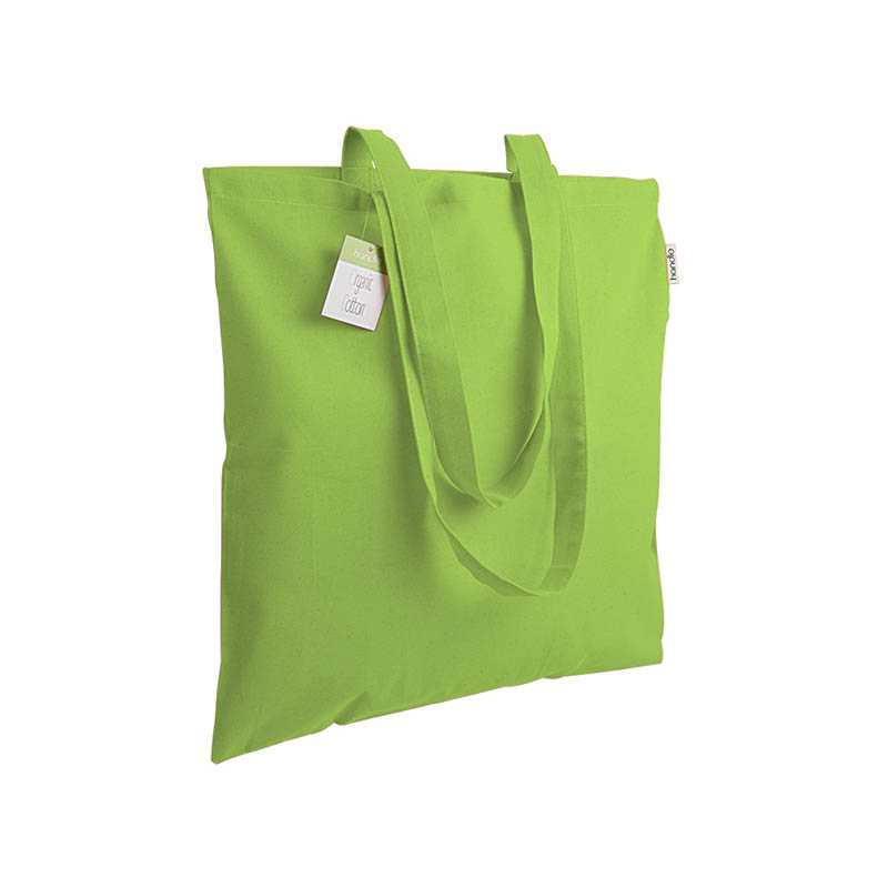 NOVINKA 2025. Nature line bag in resistant, recycled RPET felt. The result of the combination of the recycling processes of plastic materials along with the millenary technique of felt manufacturing, resulting in an eco-trend material that, in addition to being of recycled origin, also becomes recyclable. Rectangular design, with gusset at the base, extra long and extra wide reinforced handles (70 x 3.5 cm). Resistance up to 6kg, with RPET emblem on outside label.