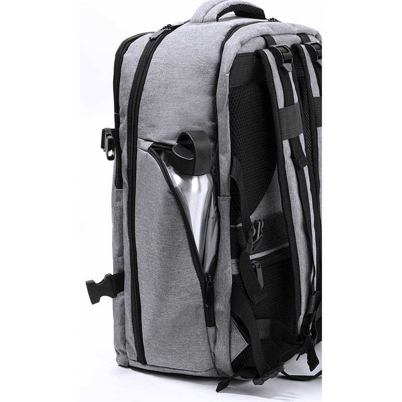 Backpack HYPE: with 2 zipped front pockets, one with small organiser, 2 zipped main pockets with padded laptop compartment, one pocket with an earphone hole for the cable, 1 zipped pocket for keys, 2 mesh pockets and packing straps on the side, strong gra