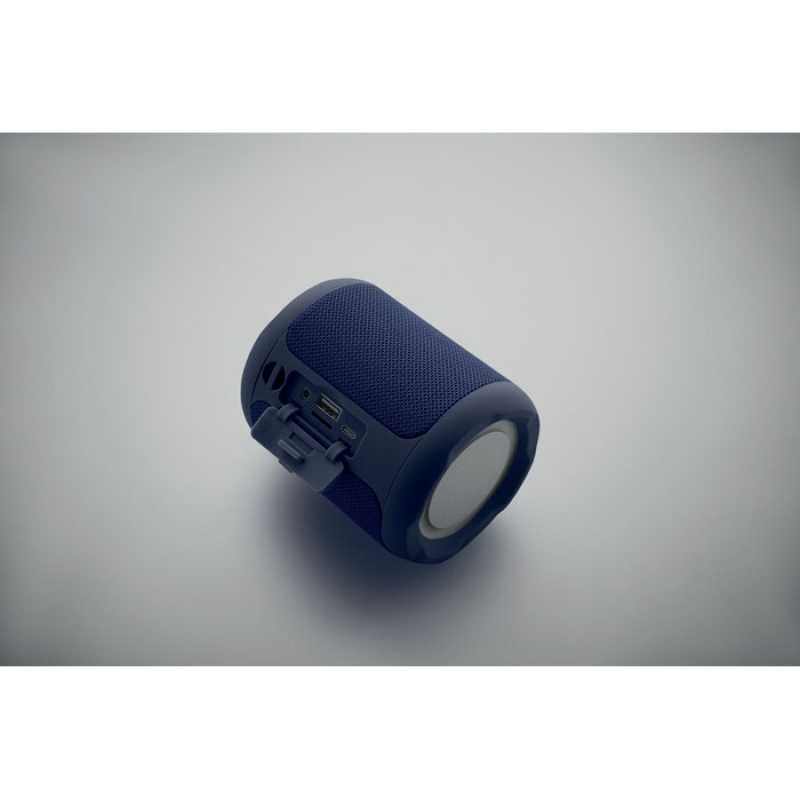 Bezdrátový 5.0 reproduktor z ABS s RPET tkaninou. Obsahuje dobíjecí baterii Li-ION 800 mAh. Port pro SD kartu a kabel AUX/USB. Výstupní data: 5W, 3Ohm a 5V. Doba přehrávání cca 3h.