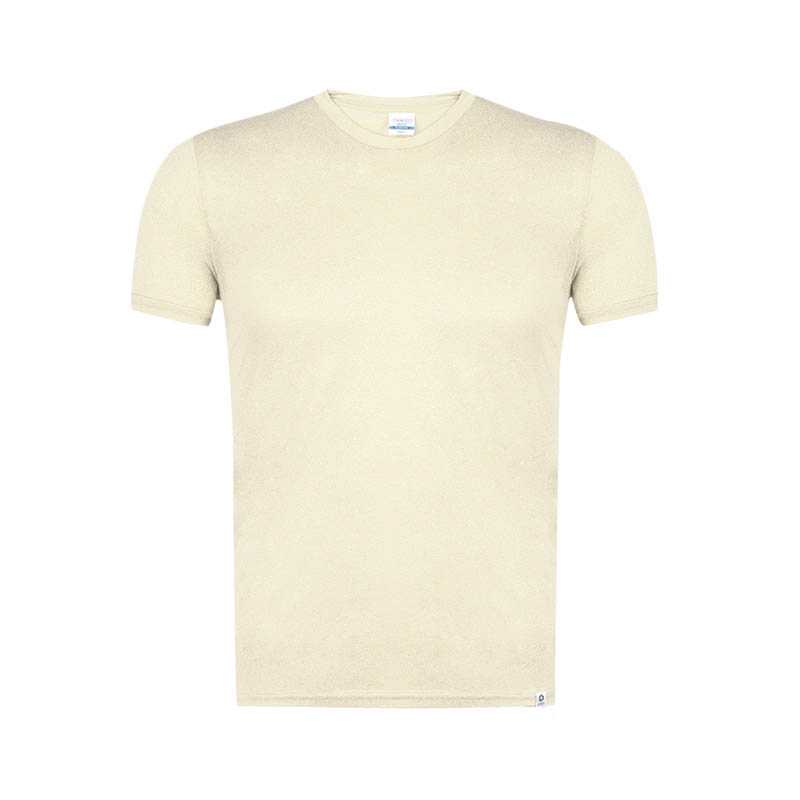 NOVINKA 2025. Unisex technical T-shirt. Made from 100% recycled polyester fabric and melange effect colour. Its 135g/m2 fabric makes it a lightweight garment ideal for sports and everyday wear. Breathable fabric easy to wash and quick drying. Very soft feel and modern cut. Narrow round neck in 2x2 rib. Double stitched hem and sleeves for durability and resistance to intensive wear. With outer RPET label, indicative of a recycled origin product. Easily removable label and available in sizes XS, S, M, L, XL and XXL.