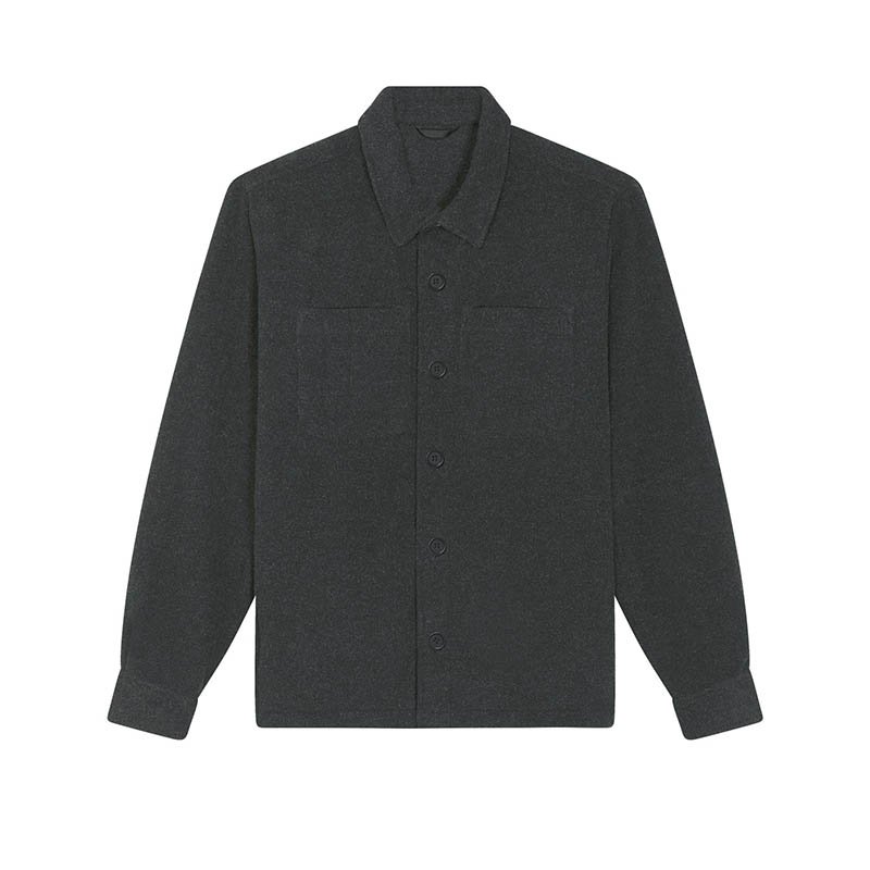Unlined shirt jacket Set-in sleeve Self fabric collar with collar stand Button down front placket with one button on sleeve cuff Chest pockets and side seam pockets on both sides Inside hanger loop in grosgrain tape Spare buttons attached on inside seam