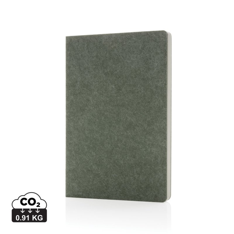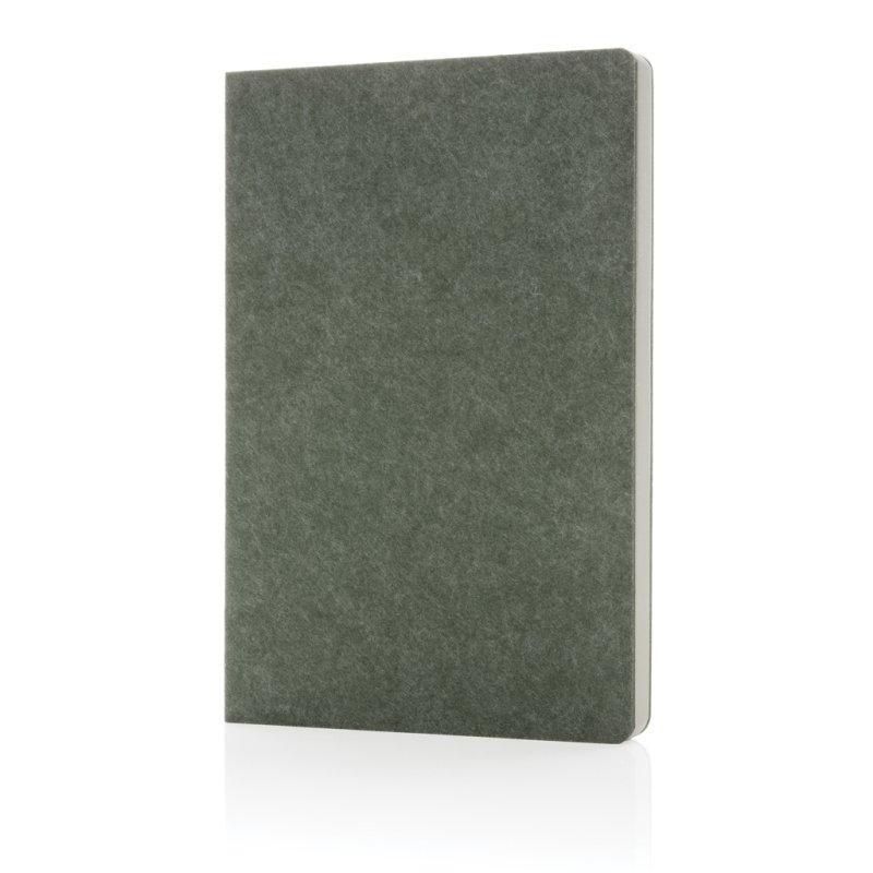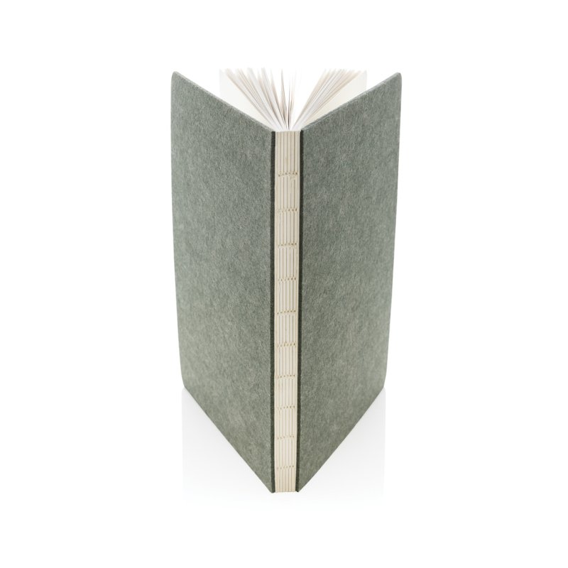 Originálny zápisník s obalom z recyklovanej plsti. Obal aj obsah tvoria GRS recyklované materiály. GRS (Global Recycle Standard) je globálny štandard, ktorý umožňuje overiť použitie recyklovaného materiálu v produkte naprieč celým dodávateľským reťazcom. Celkový podiel recyklátu podľa váhy produktu: 99%. Obsahuje 96 listov/192 strán linajkového papiera s gramážou 80 g/m2.
