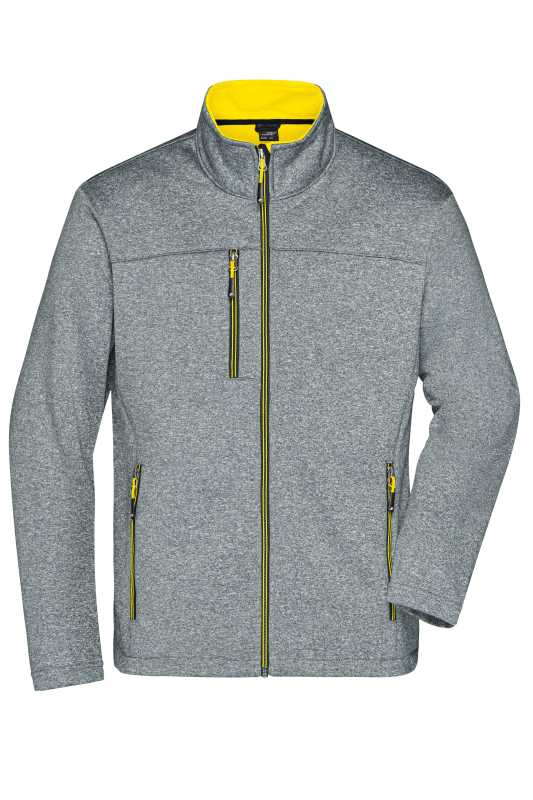 Softshellová melange bunda.Dvouvrstvý softshell s kontrastní barvou na rubu.Rub z fleece.V kontastní barvě zipy a taháčky.Dvě postranní kapsy a náprsní kapsa na zip.Ochrana proti zipu u krku .1/25 . (ks v jednom sáčku / celkem ks v kartonu).