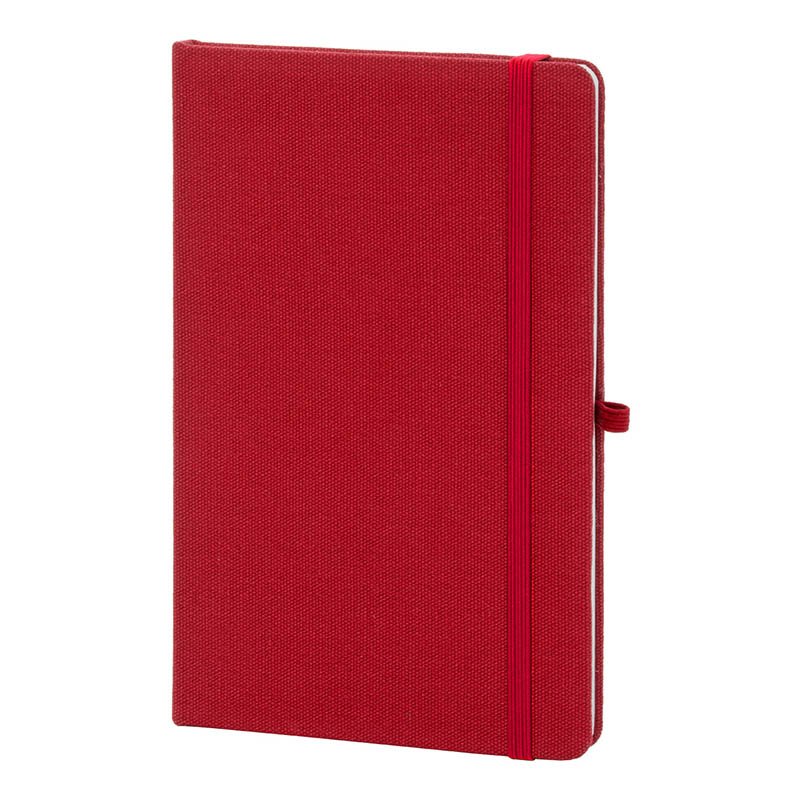 Blok potiahnutý recyklovanou bavlnou s 80 linajkovými listami z recyklovaného papiera. So záložkou v zodpovedajúcej farbe, gumičkou a držiakom na pero. Veľkosť A5.