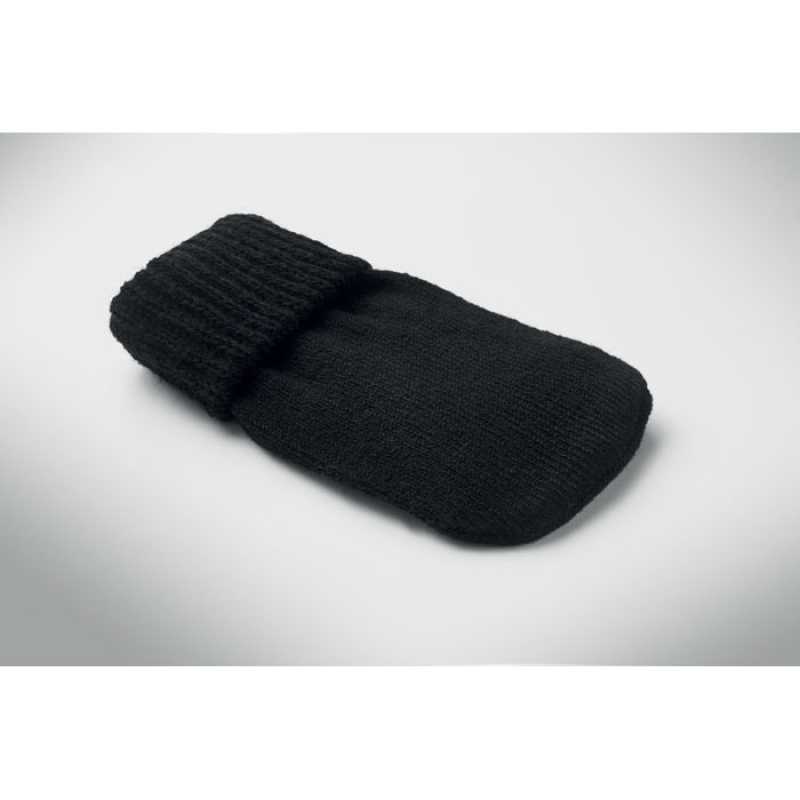 Ohřívač rukou v obale z pleteného polyesteru. Vyhřívací poštářek z PVC se aktivuje silným stisknutím vnitřní kovové destičky. Po ponoření do horké vody je opakovaně použitelný.