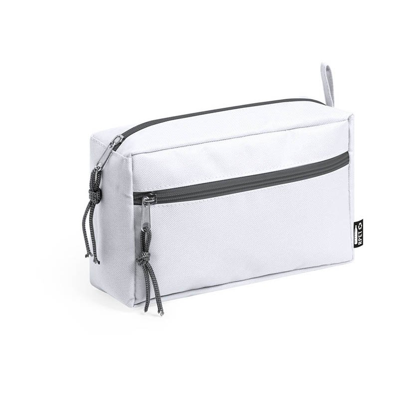 NOVINKA 2025. Multi-purpose beauty bag in durable 600D RPET. With zip closure and metal puller. Available in a wide range of stylish colours, with RPET label.RPET material is made from recycled plastic, thus promoting the reuse of plastic waste and helping the sustainability of the planet.