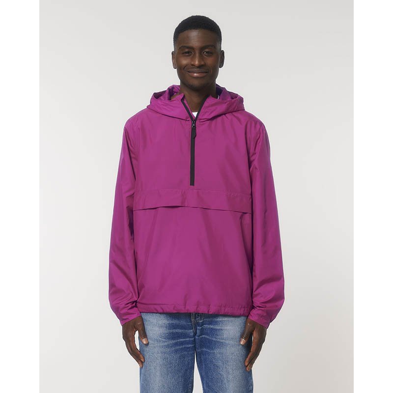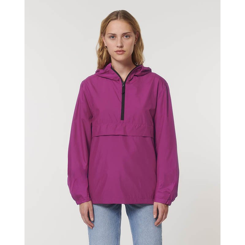 Set-in sleeve Longer back length with curved hem for protection Bottom hem with adjustable plastic stopper and elastic cord Sealed hood visor and sealed welt pockets Double layered hood with adjustable plastic stopper and elastic cord on inside Reverse