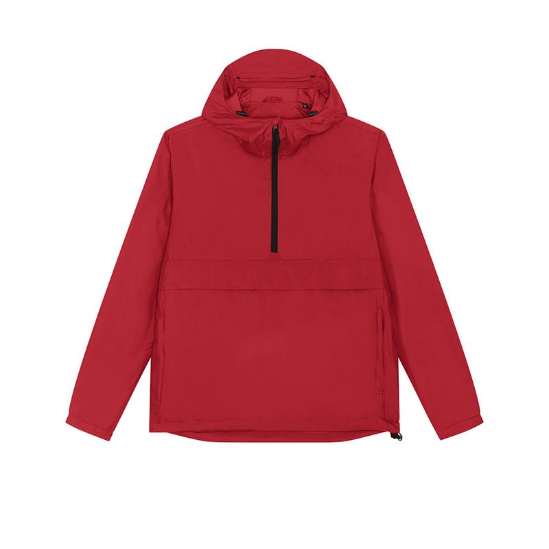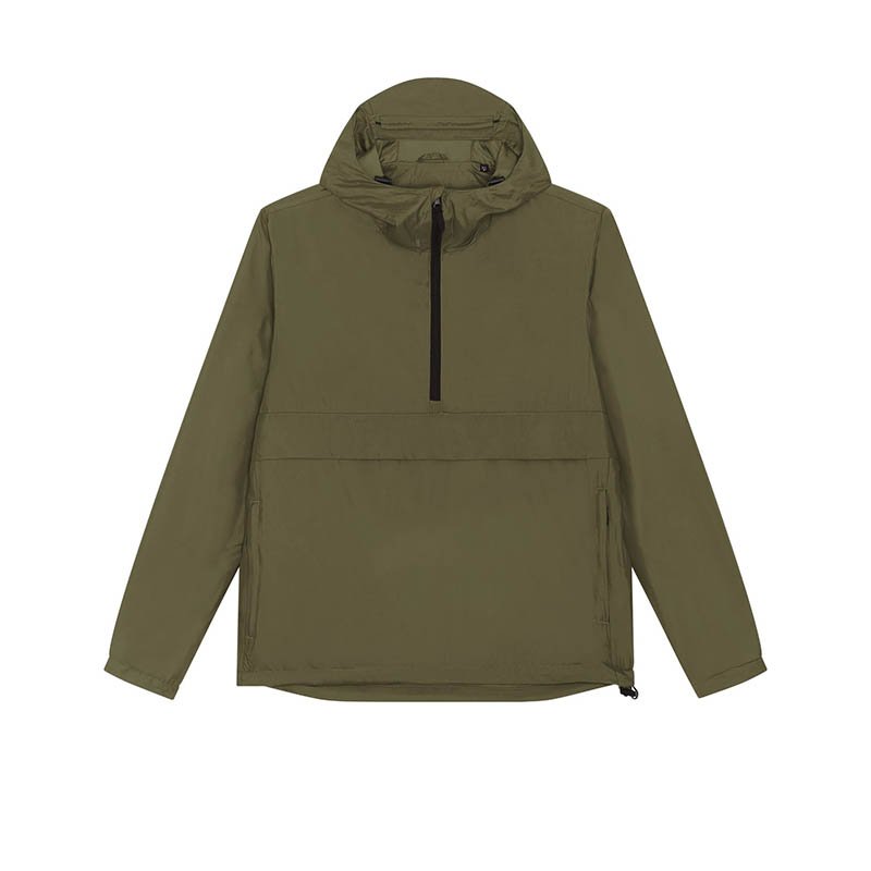 Set-in sleeve Longer back length with curved hem for protection Bottom hem with adjustable plastic stopper and elastic cord Sealed hood visor Double layered hood with adjustable plastic stopper and elastic cord on inside Reverse nylon zip at center fro
