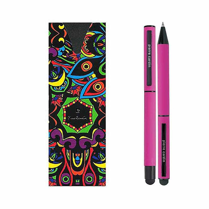 Luxusná súprava rollera a guľôčkového pera Pierre Cardin s hliníkovým telom a gumovou povrchovou úpravou, ktorá je veľmi príjemná na dotyk. Perá majú strieborné detaily a stylus. Roller obsahuje modrú náplň značky Schneider s hrotom 0,5 mm a guľôčkové pero kvalitnú modrú náplň s hrotom 1 mm. Balené v luxusnom puzdre Pierre Cardin, dodávané s certifkátom pravosti. Pero aj roller majú registrovaný dizajn. Odporúčaná technológia potlače: gravír, UV tlač. Maximálna veľkosť potlače: 40 × 6 mm. Rozmery: roller 1 × 13,5 cm; guľôčkové pero 1 × 14 cm; balenie 7 × 15,5 cm. Kartónové množstvo v ks: 60.
