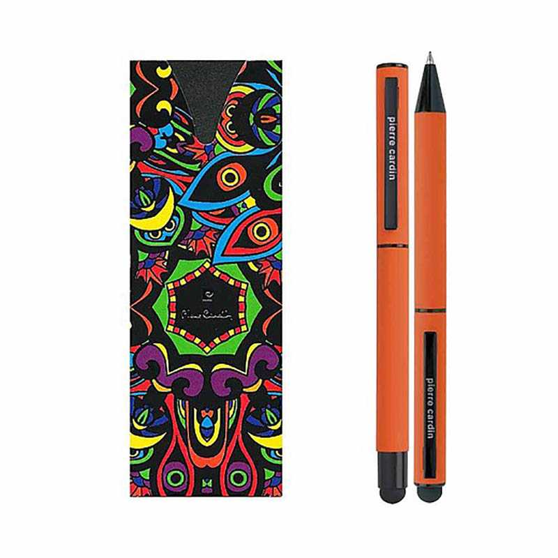 Luxusná súprava rollera a guľôčkového pera Pierre Cardin v módnej farbe s hliníkovým telom a gumovou povrchovou úpravou, ktorá je veľmi príjemná na dotyk. Perá majú čierne detaily a stylus. Roller obsahuje modrú náplň značky Schneider s hrotom 0,5 mm a guľôčkové pero kvalitnú modrú náplň s hrotom 0,7 mm. Balené v luxusnom puzdre Pierre Cardin, dodávané s certifkátom pravosti. Odporúčaná technológia potlače: gravír, UV tlač. Maximálna veľkosť potlače: 40 × 6 mm. Rozmery: roller 1 × 13,5 cm; guľôčkové pero 1 × 14 cm; balenie 7 × 15,5 cm. Kartónové množstvo v ks: 60.