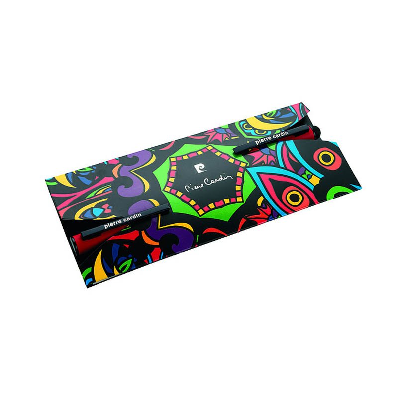 Luxusná súprava rollera a guľôčkového pera Pierre Cardin s hliníkovým telom a gumovou povrchovou úpravou, ktorá je veľmi príjemná na dotyk. Perá majú strieborné detaily a stylus. Roller obsahuje modrú náplň značky Schneider s hrotom 0,5 mm a guľôčkové pero kvalitnú modrú náplň s hrotom 1 mm. Balené v luxusnom puzdre Pierre Cardin, dodávané s certifkátom pravosti. Pero aj roller majú registrovaný dizajn. Odporúčaná technológia potlače: gravír, UV tlač. Maximálna veľkosť potlače: 40 × 6 mm. Rozmery: roller 1 × 13,5 cm; guľôčkové pero 1 × 14 cm; balenie 7 × 15,5 cm. Kartónové množstvo v ks: 60.