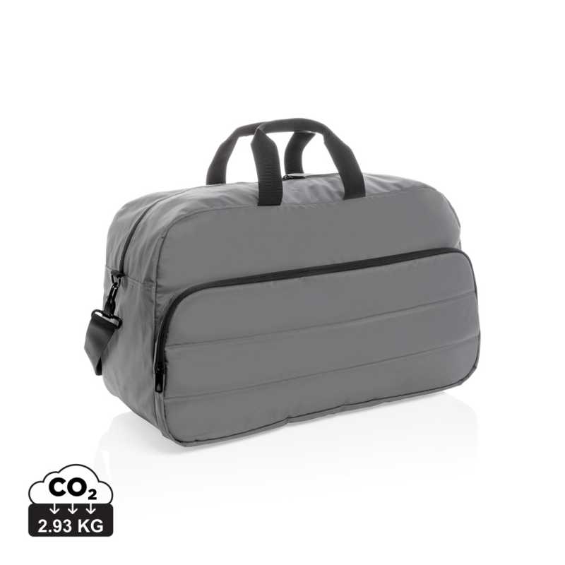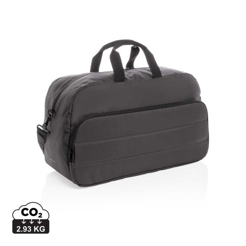 Skutočne transparentná ekológia. Kolekcia Impact obsahuje vystopovatelnou zložku AWARE™, ktorá využíva moderné možnosti skenovania a technológiu blockchain, vďaka čomu je možné s istotou garantovať recyklovaný pôvod použitého materiálu a reálnu úsporu vody.Na výrobu tohto produkta bolo využité 45 PET fliaš a bolo ušetrených 27 litrov vody. Z výťažku každého predaného produktu z kolekcie Impact prispevame 2% na podporu iniciatívy Water.org. Moderná víkendová taška v jednoduchom čistom dizajne ideálnom na cestovanie, vyrobená z RPET AWARE™. Rozmerný hlavný oddiel poskytuje dostatok priestoru na krátky výlet, 2 sieťové vrecká pre organizáciu drobností. Predné vrecko na zips s 2 malými vreckami a 2 pútkami na perá. Vonkajšia časť aj vnútorná podšívka sú vyrobené zo 100% polyesteru AWARE™ získaného z recyklovaných PET fliaš. Bez PVC. Kalkulácia úspor vychádza z overených LCA dát zverejnenými globálnou neziskovou organizáciou Textile Exchange.