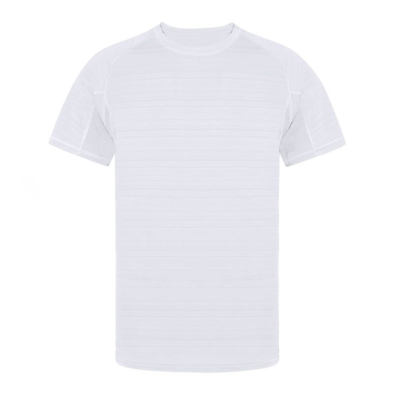 Short Sleeve Crewneck Sports T-shirt. Made of breathable technical honeycomb knitting fabric that promotes sweat wicking and quick-drying, ensuring optimal comfort. Micro-perforated technical fabric on the sides for improved breathability and a better airflow. Curved hem with a longer back that provides greater comfort during movement. Flat seams on sides and armholes for reduced friction and enhanced comfort. Suitable marking methods: sublimation on white, screen printing, embroidery, transfer printing, vinyl application. Ideal as sportswear and physical and workout activities.